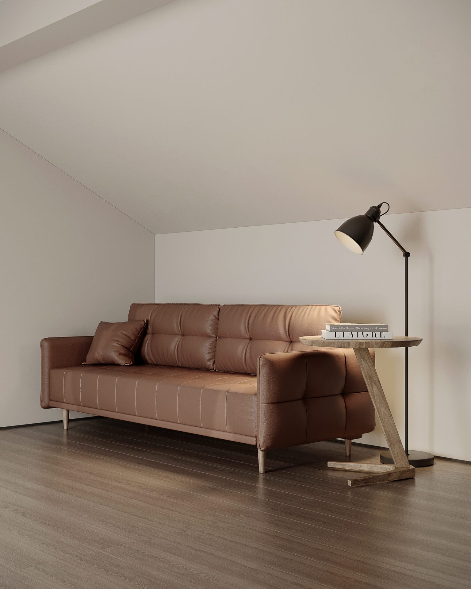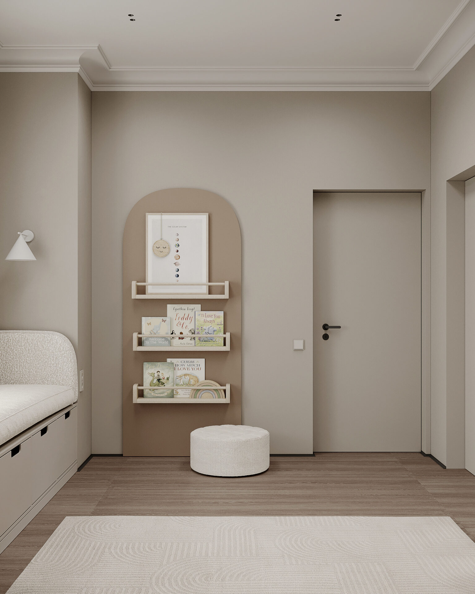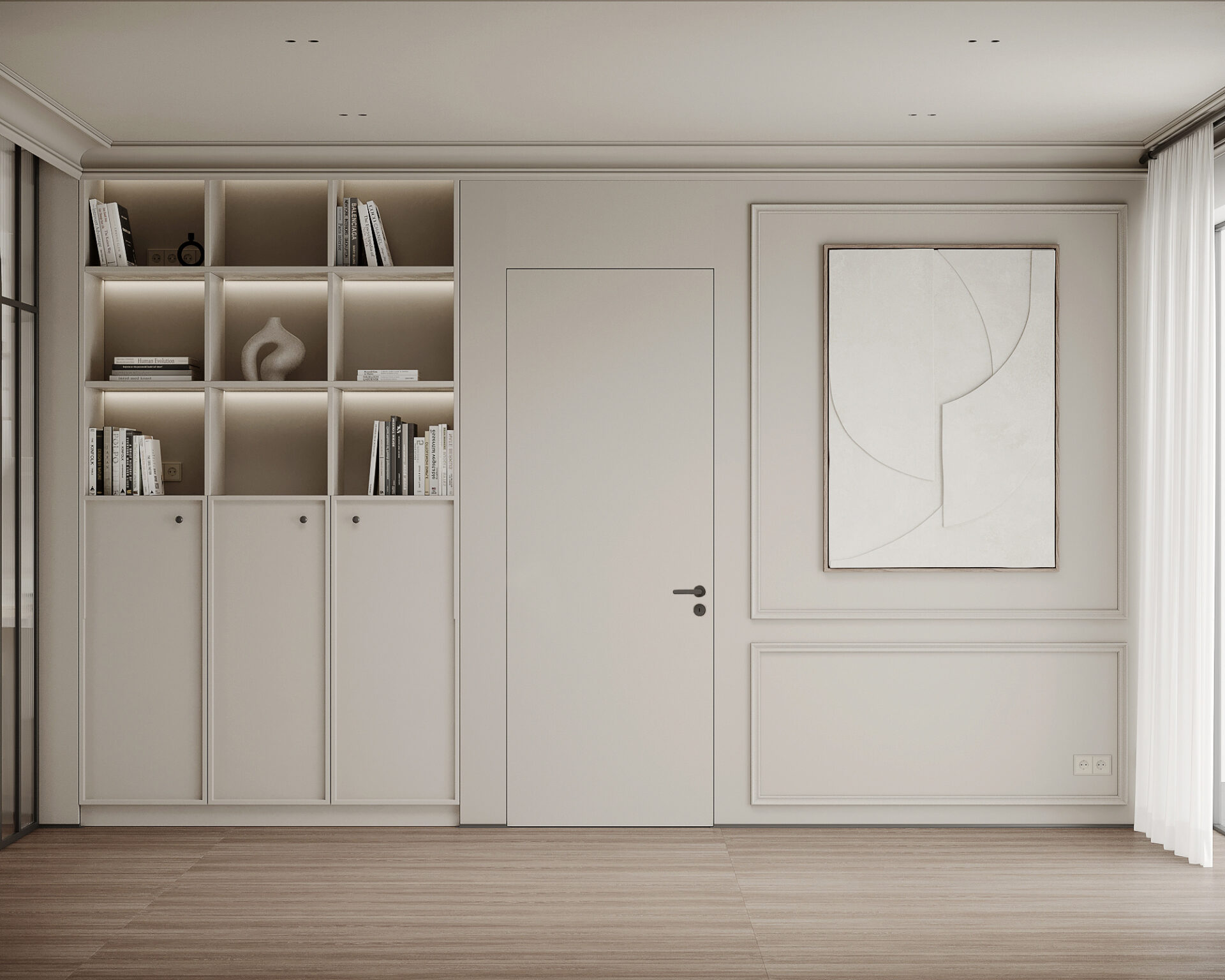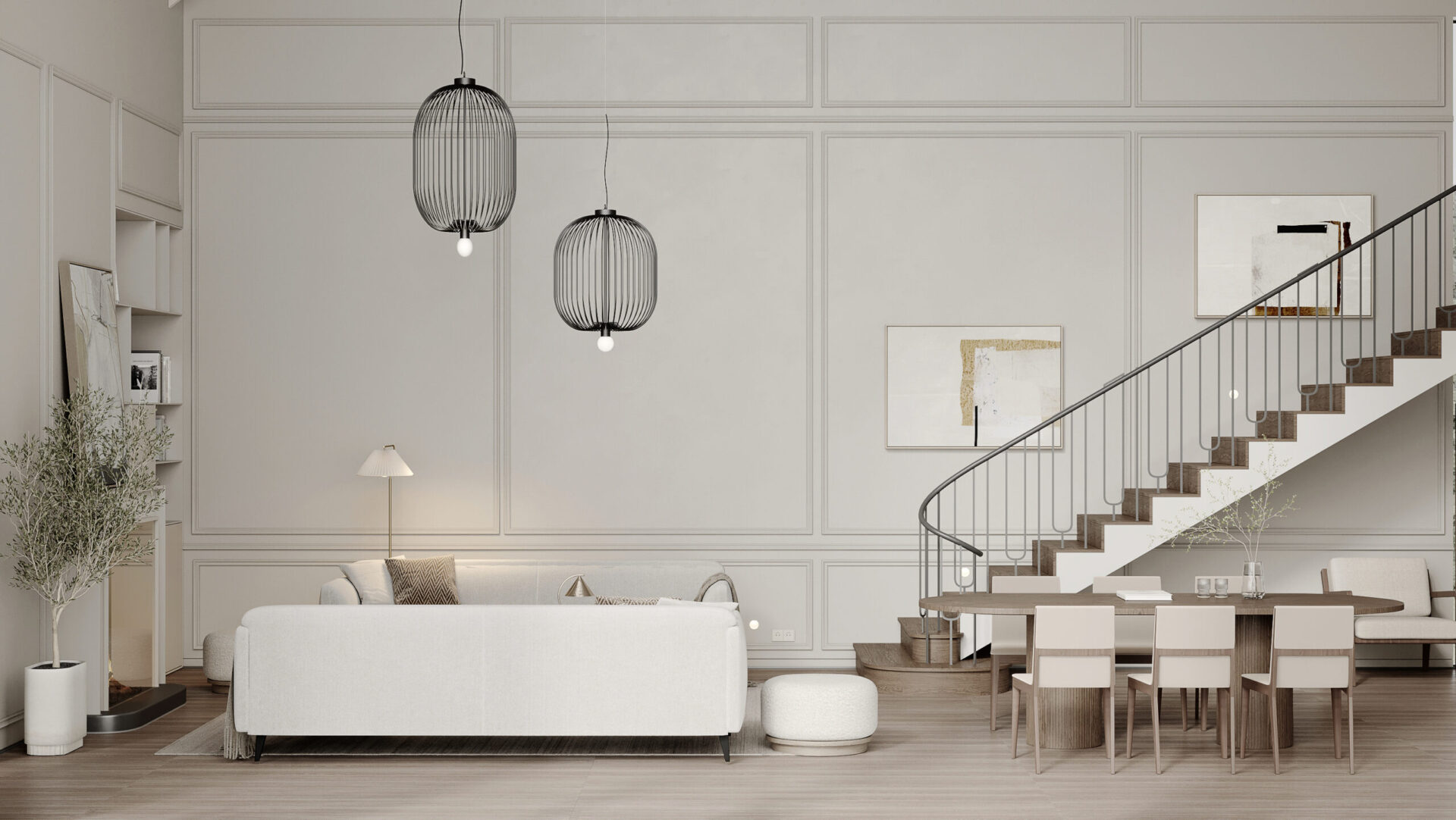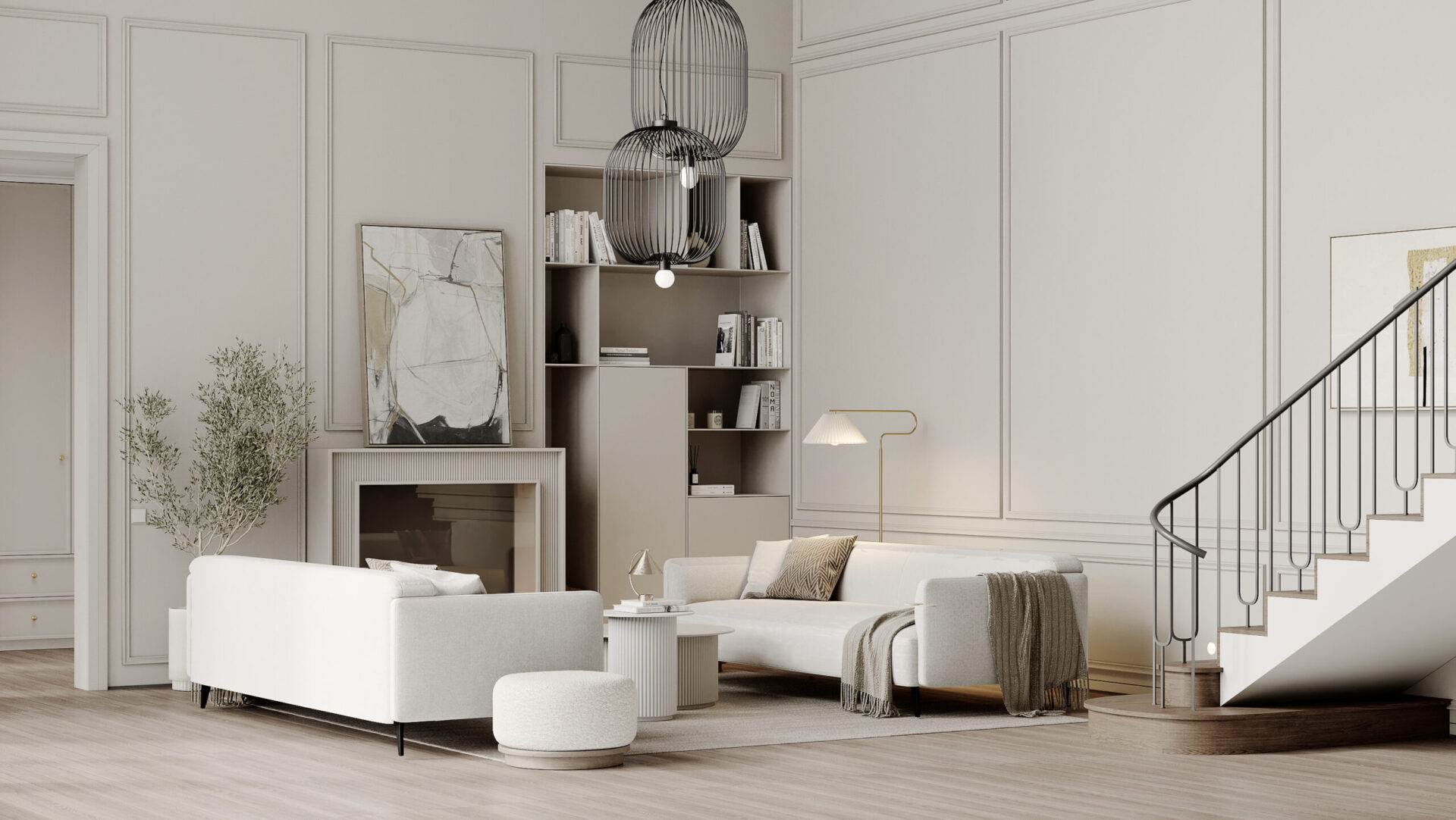 Будинок у стилі фахверк. Інтер’єр цього будинку розроблявся паралельно з архітектурним проєктом. В основу концепції лягла американська класика та елементи мінімалізму. Простір поділений на три зони: гостьову – для спільного проведення часу, приватну – з окремими спальнями та санвузлами, а також робочу – з окремими кабінетами.