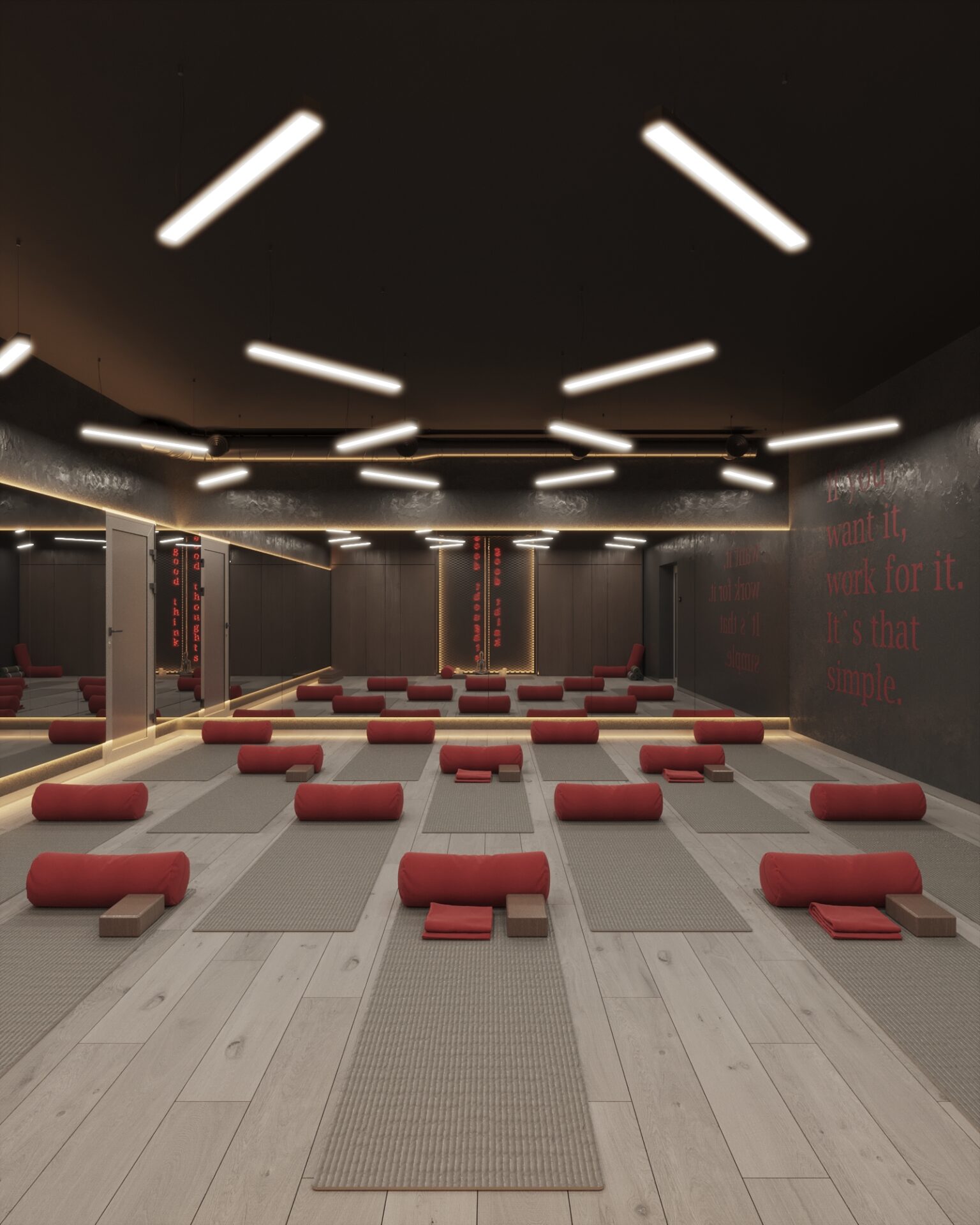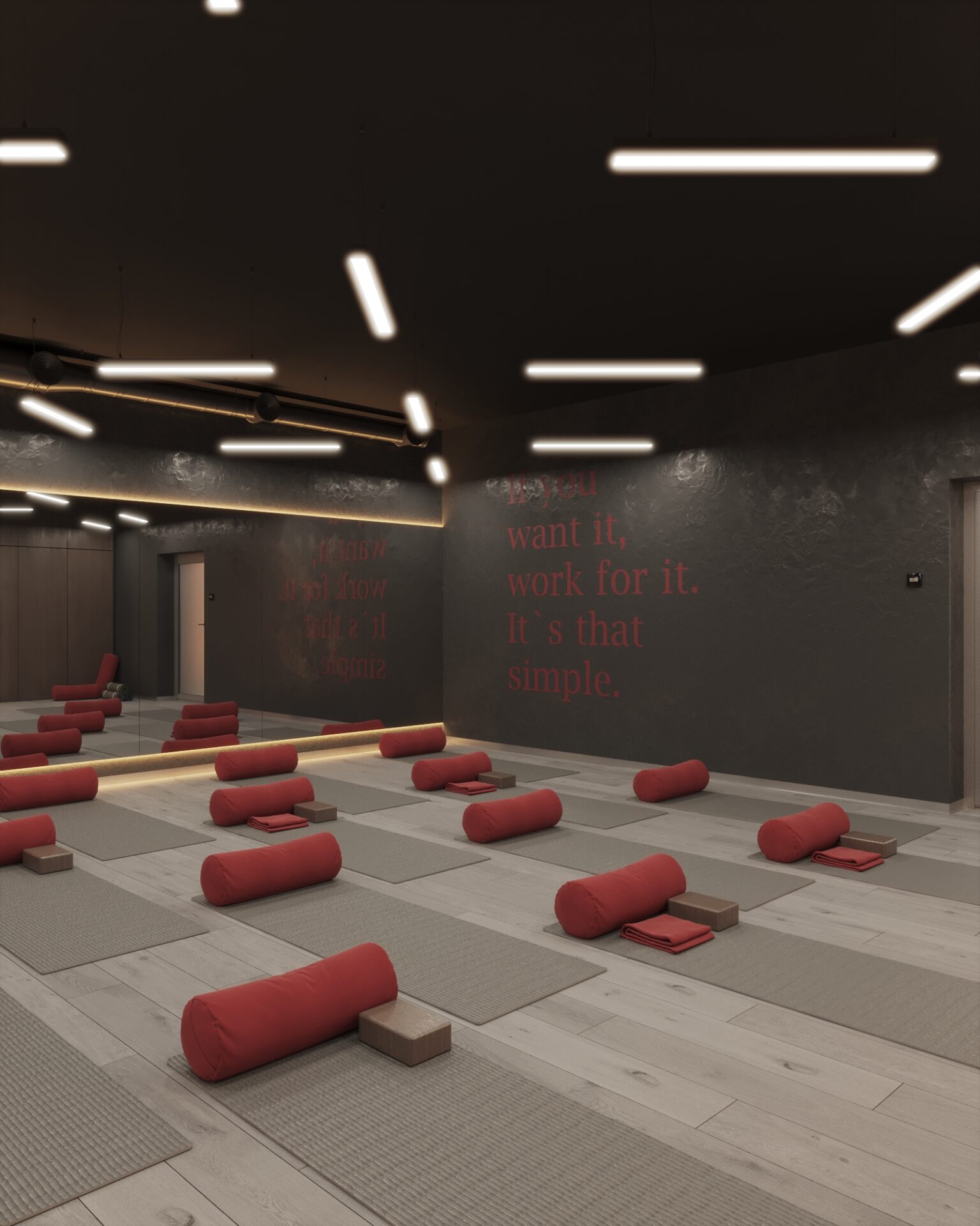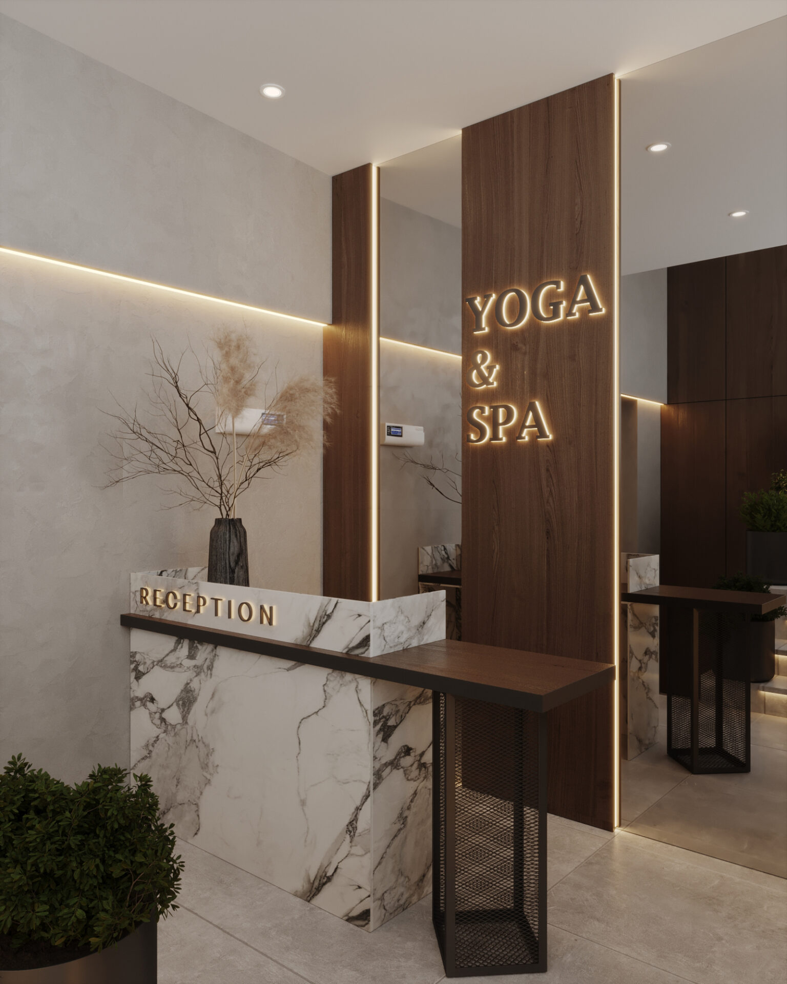 Мультифункціональний заклад на Івано-Франківщині, який об’єднує в собі кілька напрямків: спа, зал для занять йогою та косметологію. При проєктуванні у нас було два важливих завдання: уникнення глобальних перепланувань в силу технічних особливостей приміщення, а також використання в проєкті вже закуплених матеріалів.