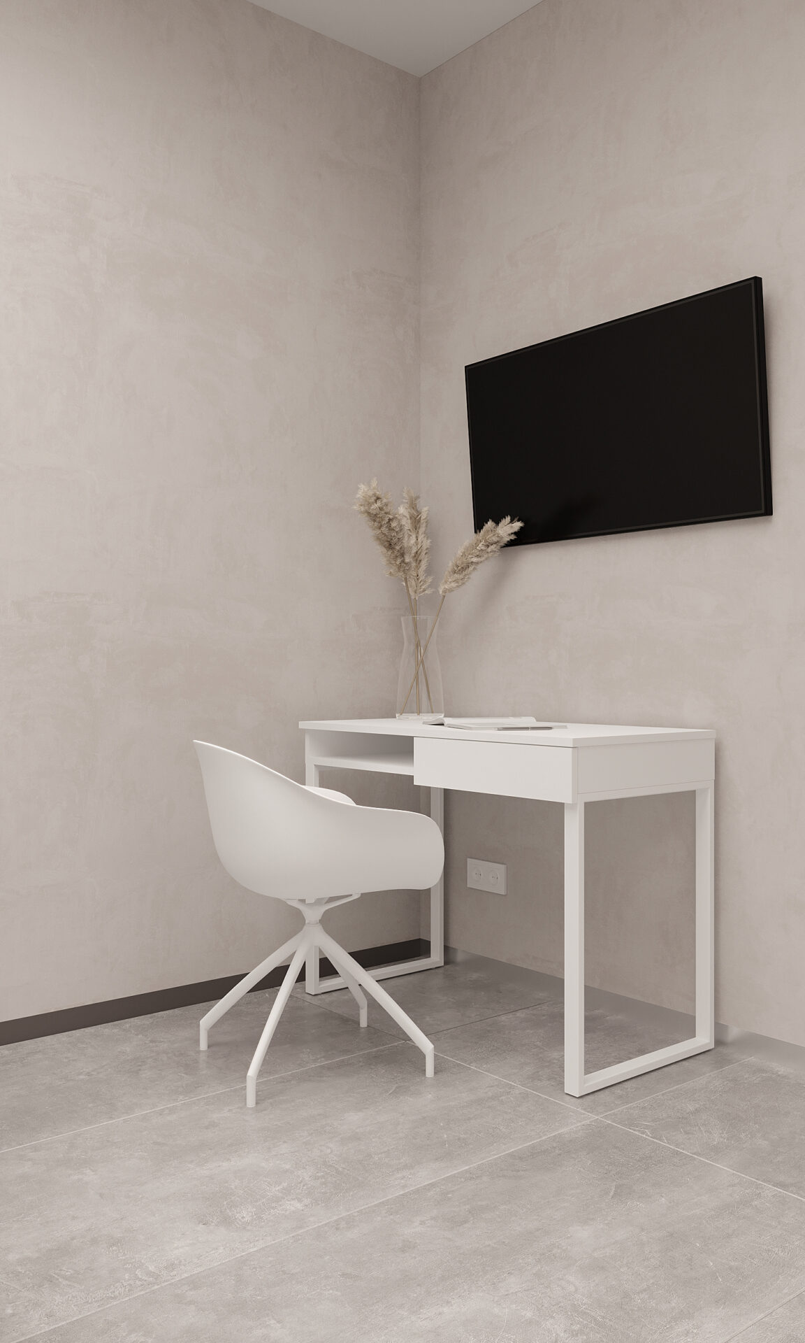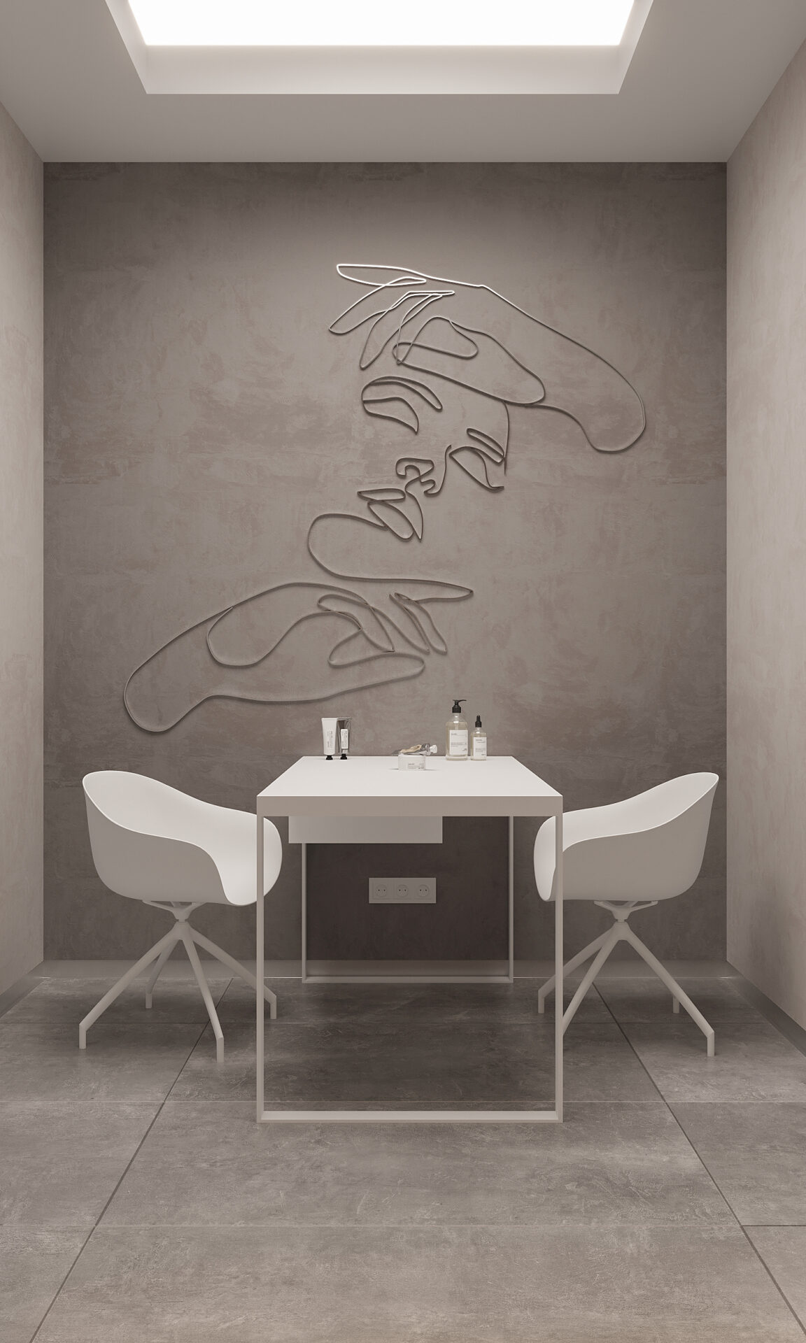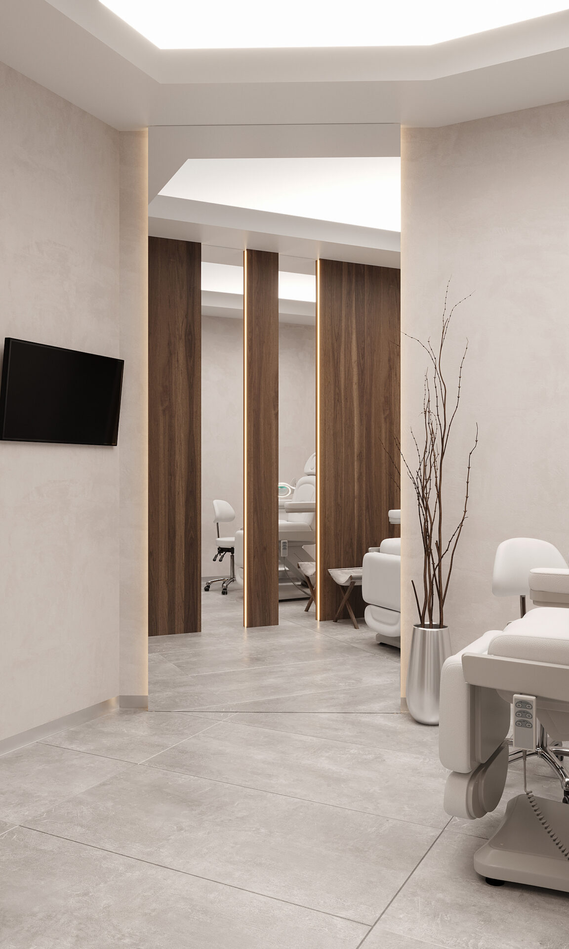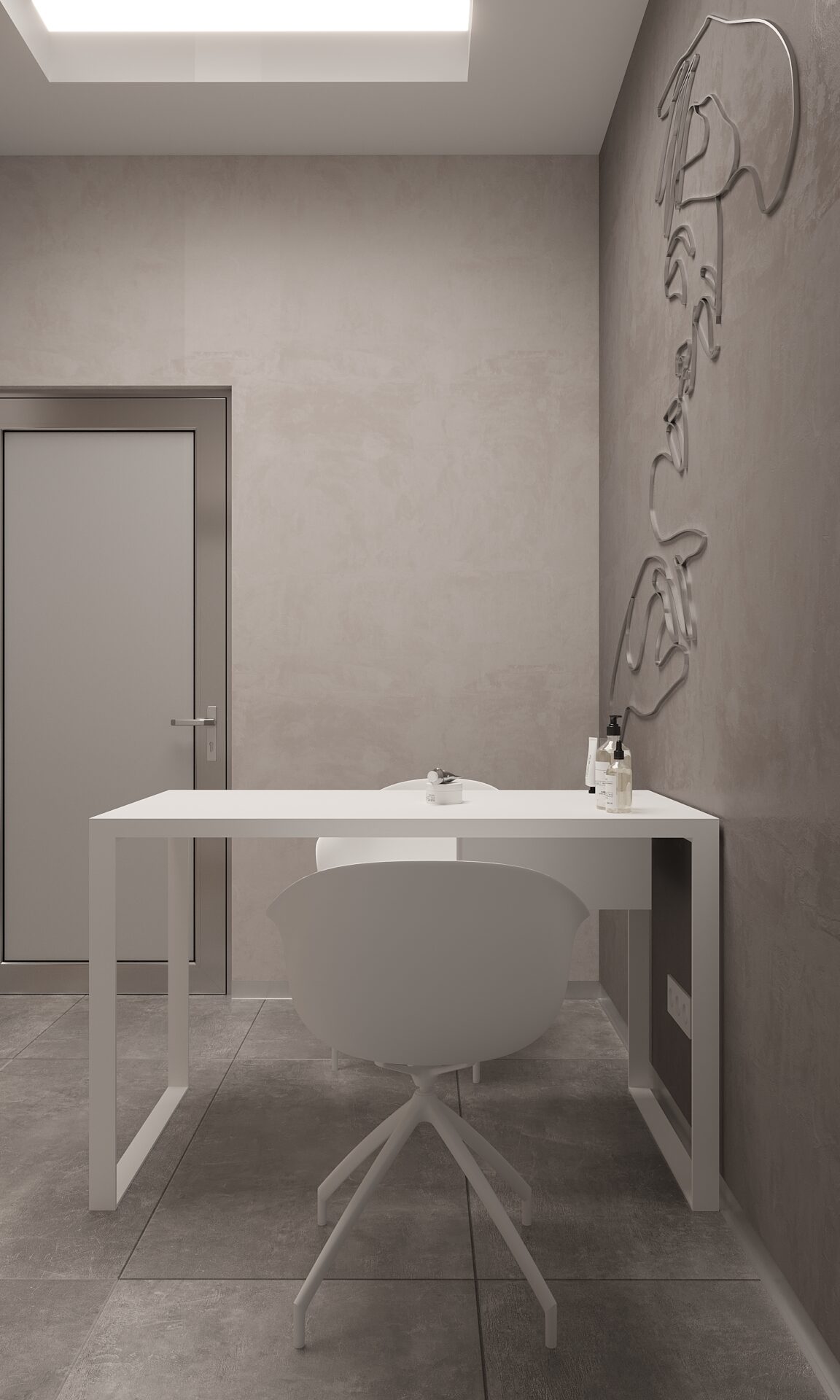Мультифункціональний заклад на Івано-Франківщині, який об’єднує в собі кілька напрямків: спа, зал для занять йогою та косметологію. При проєктуванні у нас було два важливих завдання: уникнення глобальних перепланувань в силу технічних особливостей приміщення, а також використання в проєкті вже закуплених матеріалів.