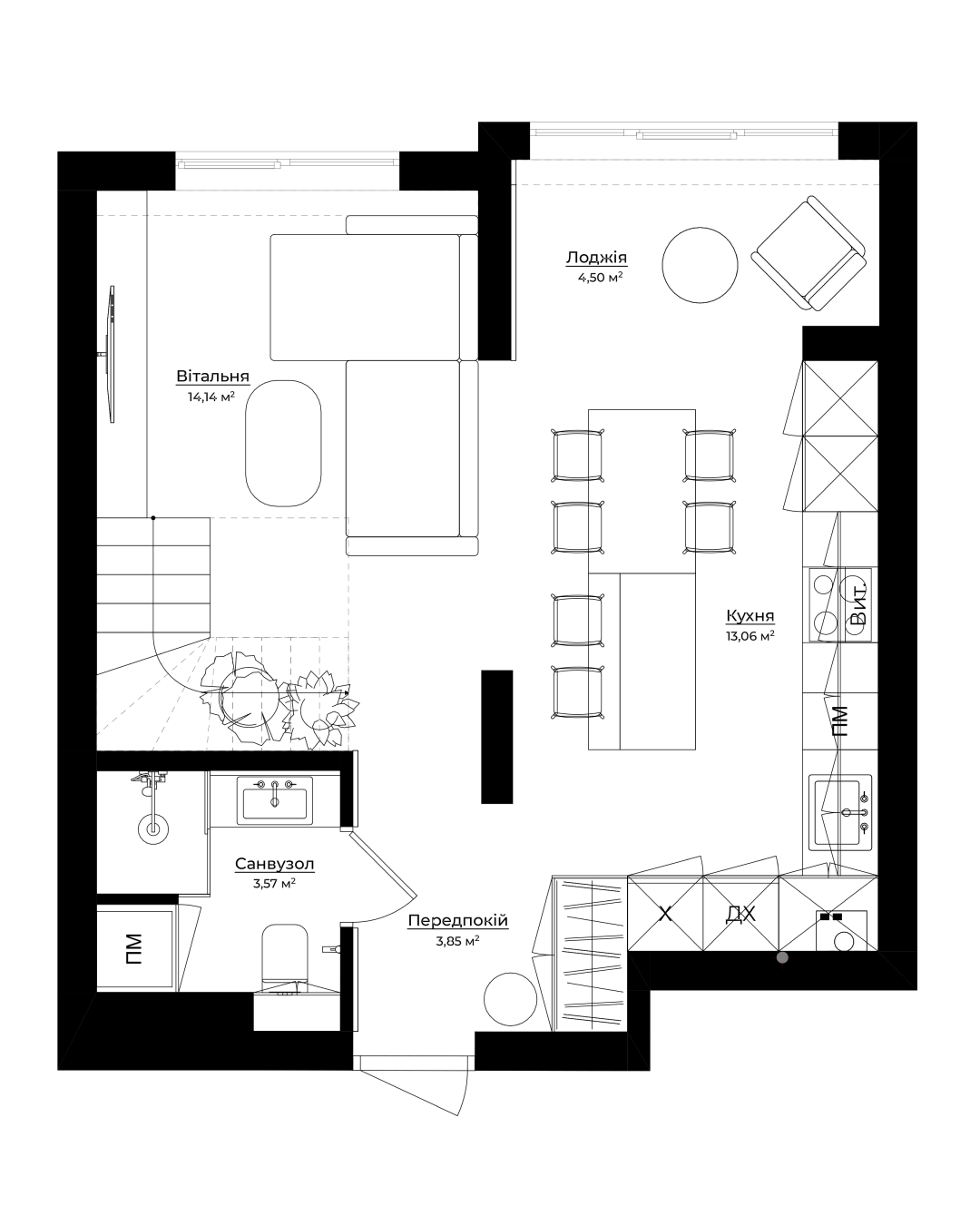 Дворівнева квартира у ЖК Семицвіт. Наша замовниця чітко знала свою ідеальну концепцію майбутнього житла — неокласика, з притаманним вишуканим благородством та теплою колірною палітрою. На першому поверсі у нас максимально простора кухня-вітальня, на другому – спальня з гардеробом, розкішна ванна та кабінет.