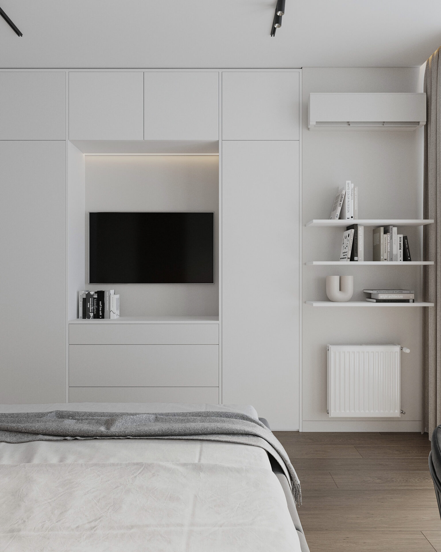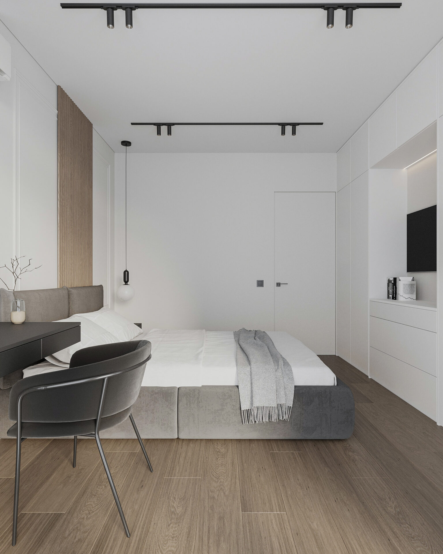 Квартира під інвестицію з метою здачі в аренду. В таких випадках важливо щоб інтер’єр був естетичним та універсальним. Щоб візуально квартира виглядала дорожче, ми використали неокласичні елементи. Також в об’єктах під здачу варто зберігати баланс між вартістю матеріалів, їх зносостійкістю та легкозамінністю.
