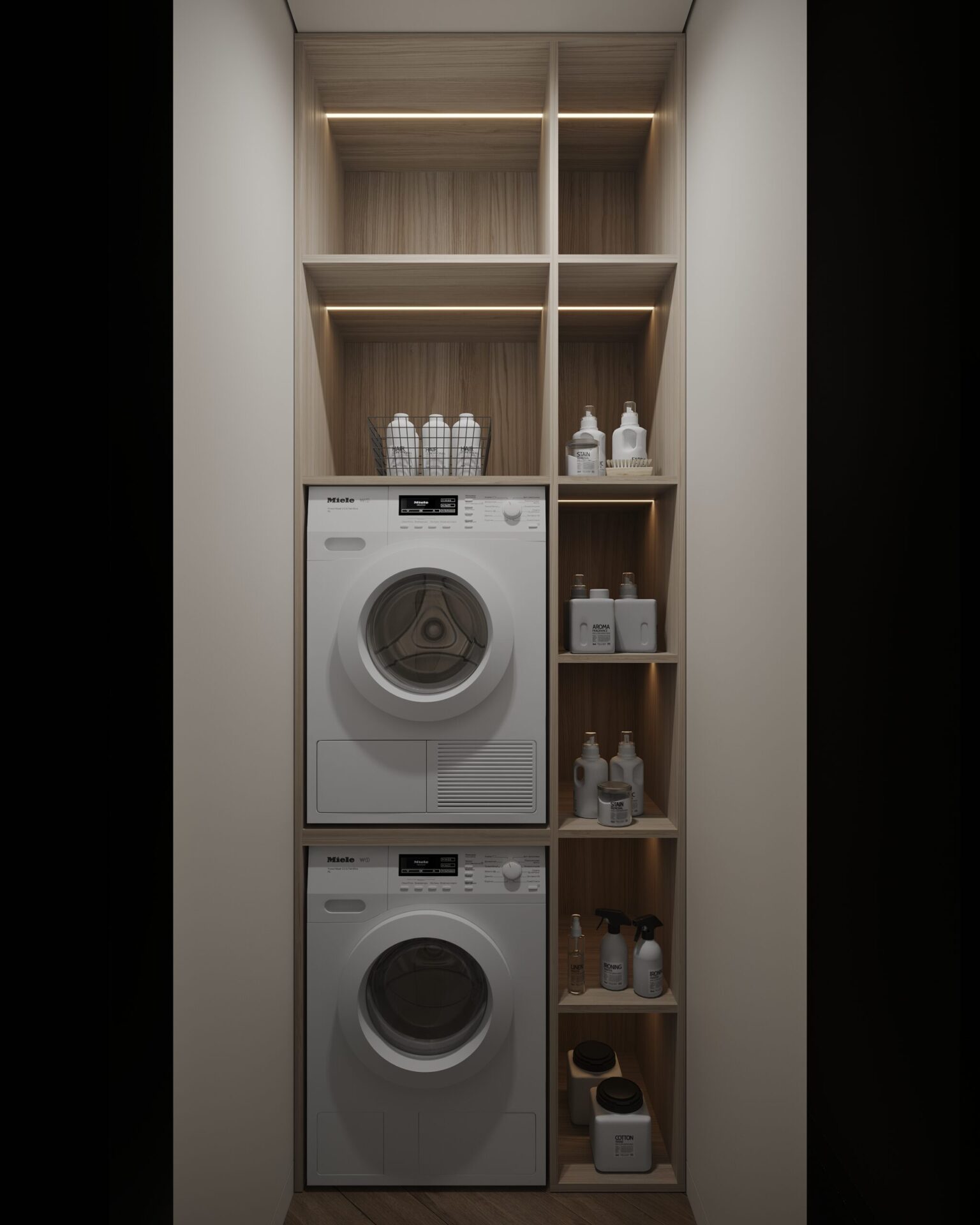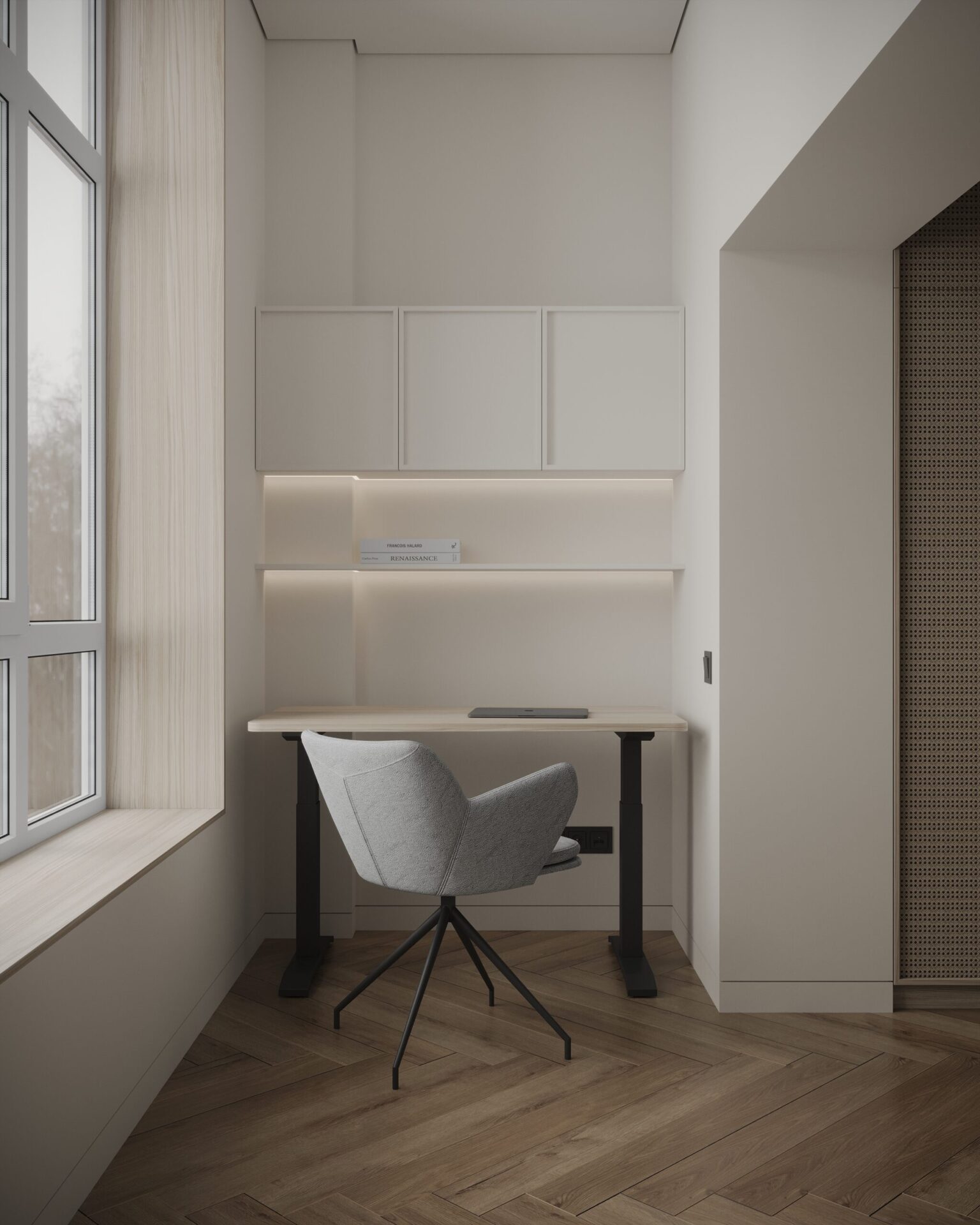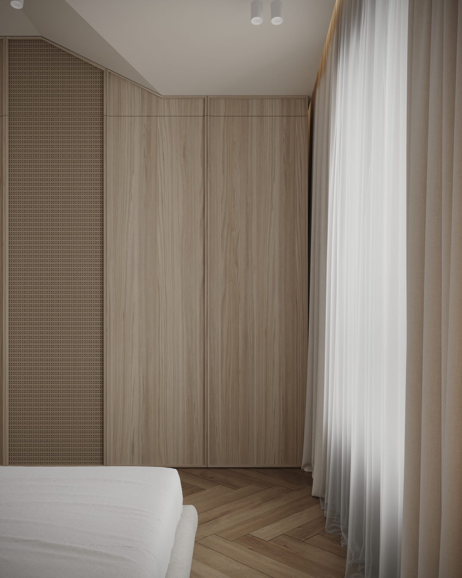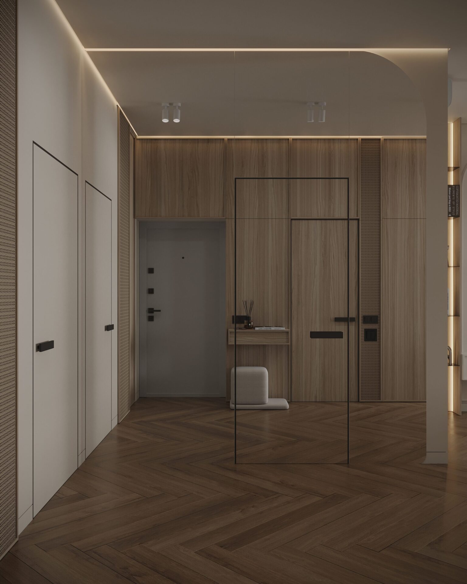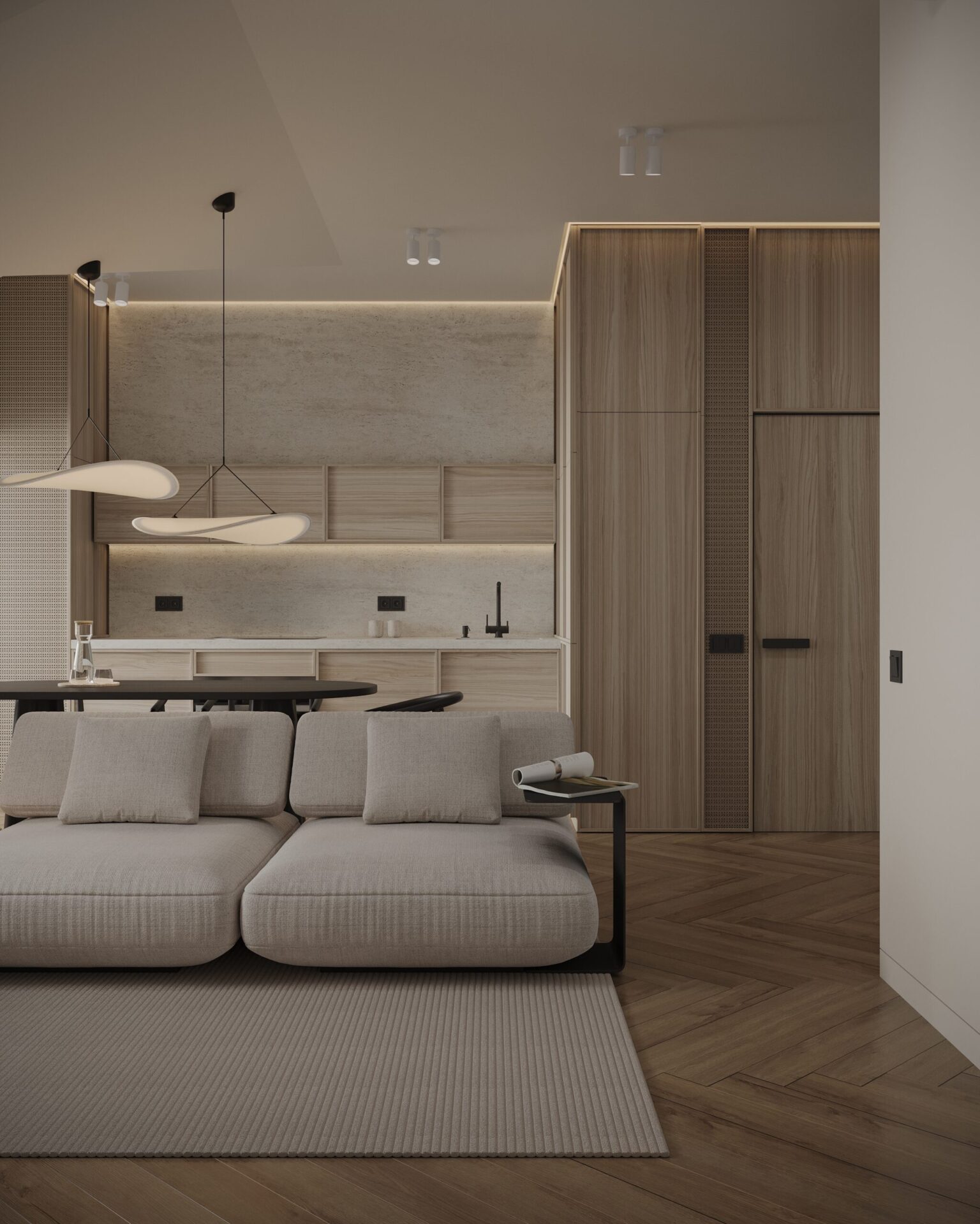 Проєкт для молодої пари, яка працює у сфері digital. Інтер’єр поєднує мінімалістичну функціональність з класичними акцентами. В дерев’яних елементах інтер’єру, яких тут є доволі багато, спостерігаються також нотки скандинавського стилю, який додає затишку та природності.